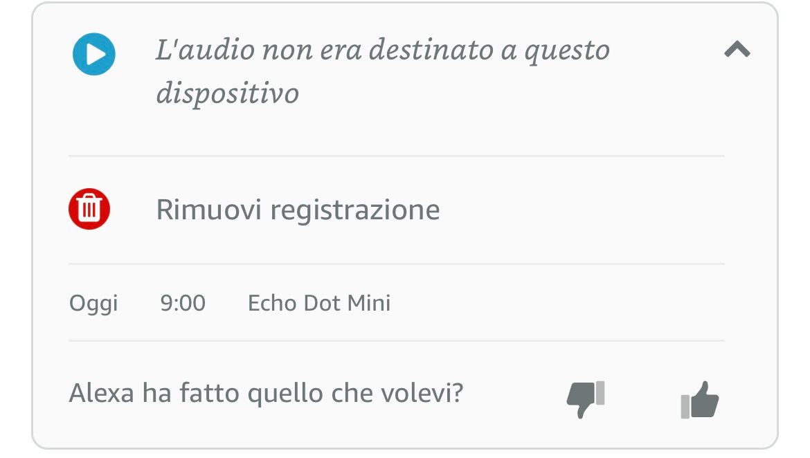 Una cosa che mi ha incuriosito è che rimangono registrati anche i file audio "non destinati a questo dispositivo": ovvero Alexa tiene registrate anche le conversazioni che non sono attinenti ad un comando: