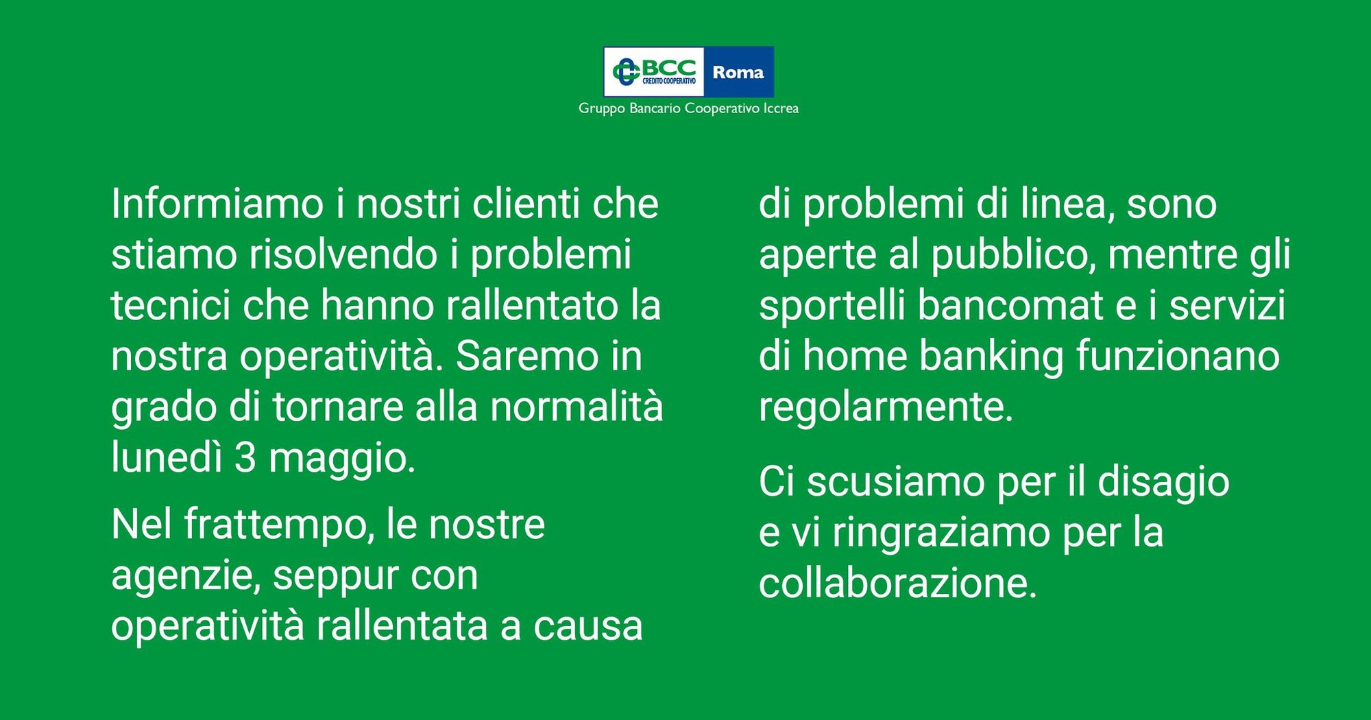 - Sospetto attacco informatico alla Banca di Credito Cooperativo di Roma.
