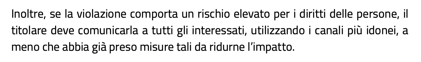 La realtà però è diversa. Ho raccontato spesso di furti di informazioni verso la Pubblica Amministrazione, soprattutto quella locale, più indifesa. Ma, per quanto ne so, nella maggior parte dei casi i cittadini non sono stati avvertiti, oppure il messaggio è stato limitato ad un laconico banner sul sito istituzionale.