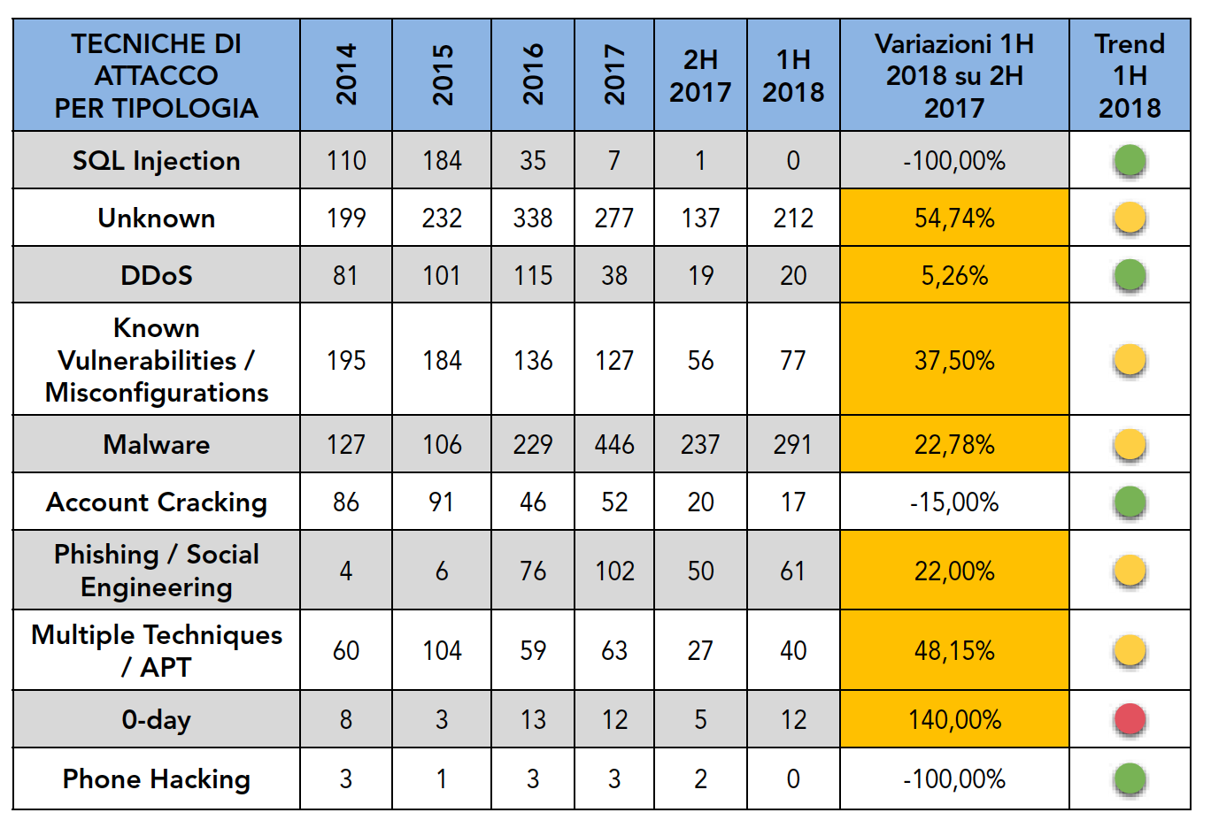 Il grafico parla da solo: teniamo presente inoltre che un numero considerevole di attacchi non sono pubblici, perché le vittime se ne accorgono mesi o anni dopo.