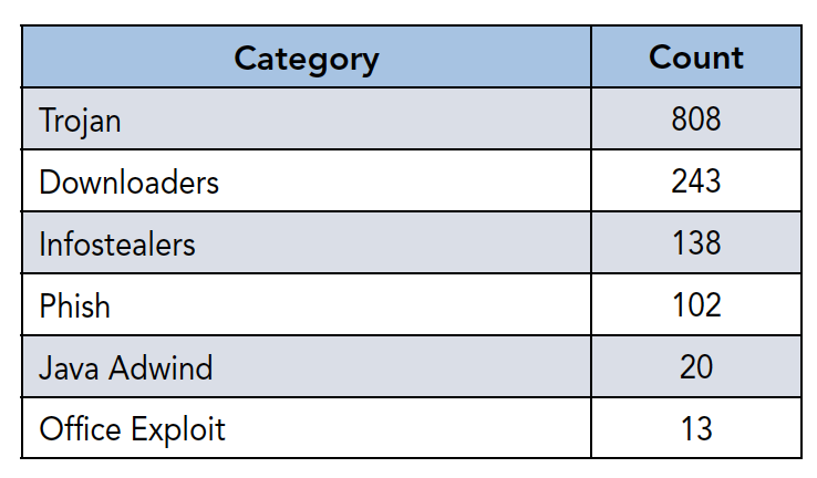 Le minacce principali rilevate verso clienti italiani evidenziano come otre il 60% rientrano nella categoria del Trojan. Secondo posto per i Downloader.